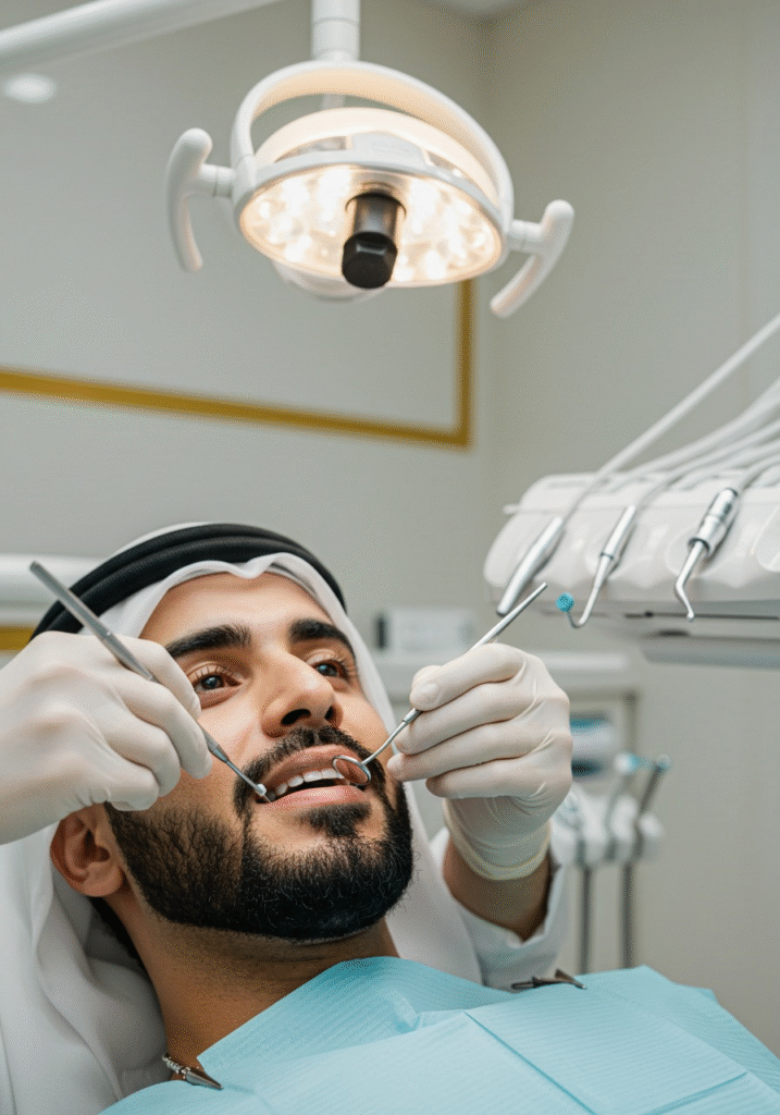• بعد التأكد من التئام الزرعة، يتم تثبيت الدعامة، ثم تركيب التاج الصناعي النهائي.